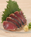 Katsuo Tataki is a classic Japanese preparation of bonito (skipjack tuna). The fish is frozen immediately on board, and in that state, the fillets are quickly seared over an open flame. This special technique gives the outside a smoky flavor, while the inside remains raw, tender, and incredibly fresh.